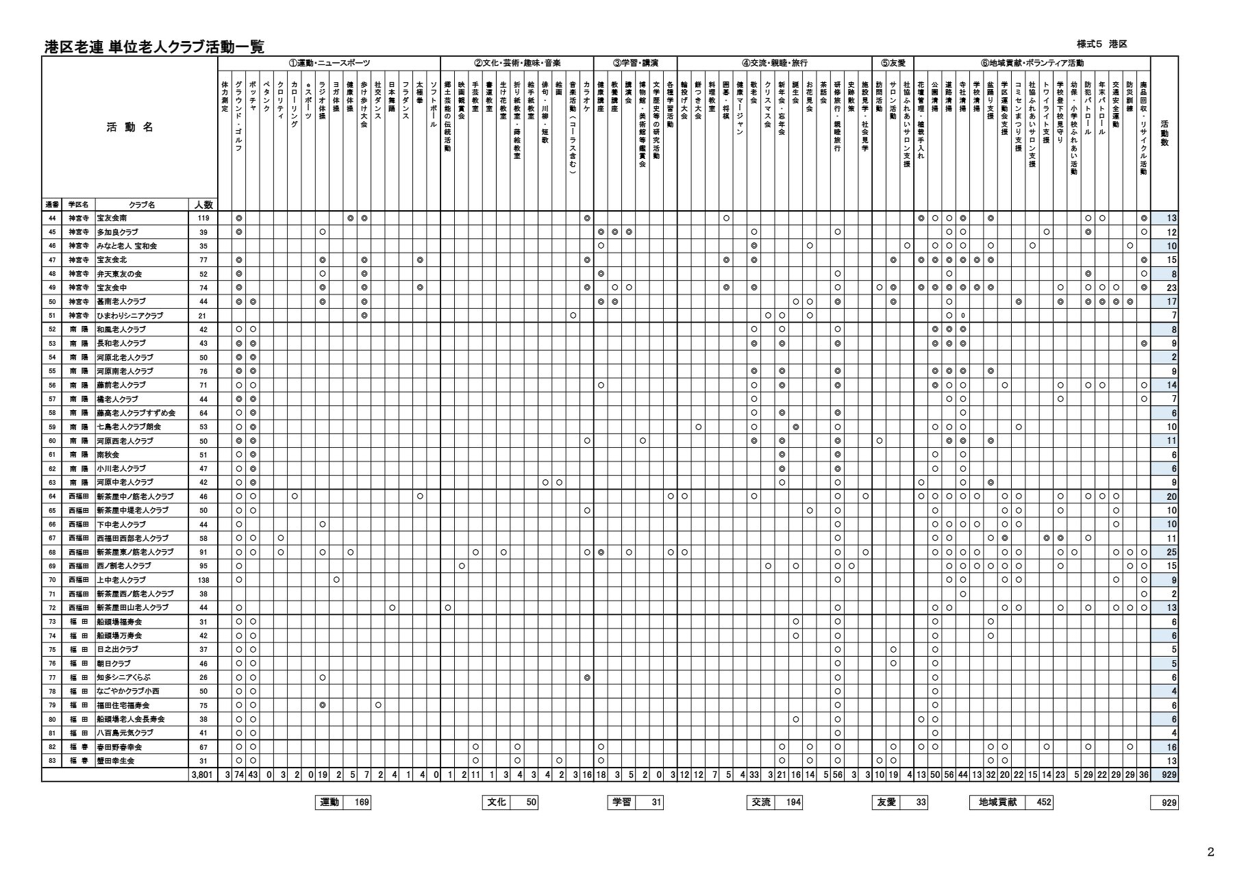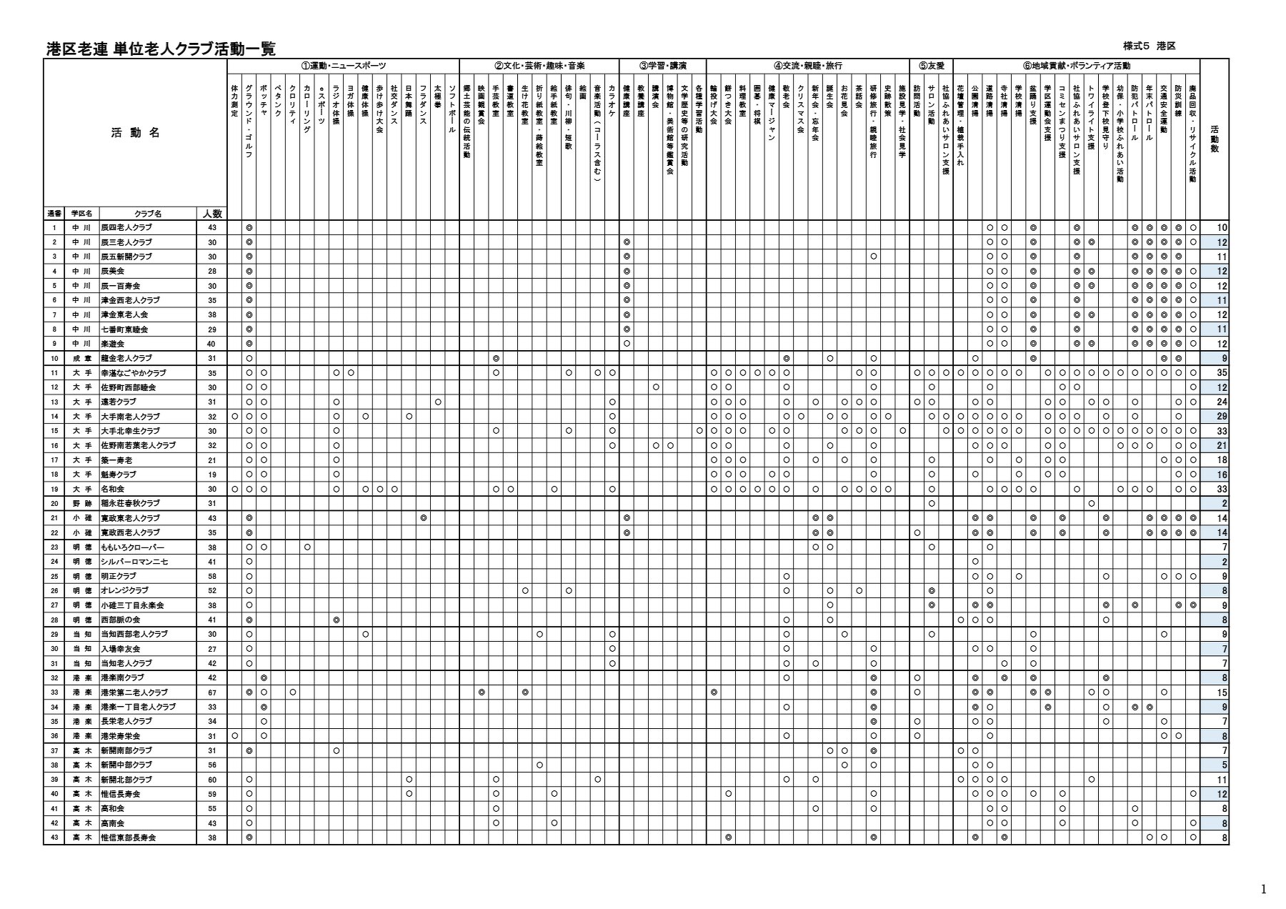 • 区老連別 単位老人クラブ活動一覧