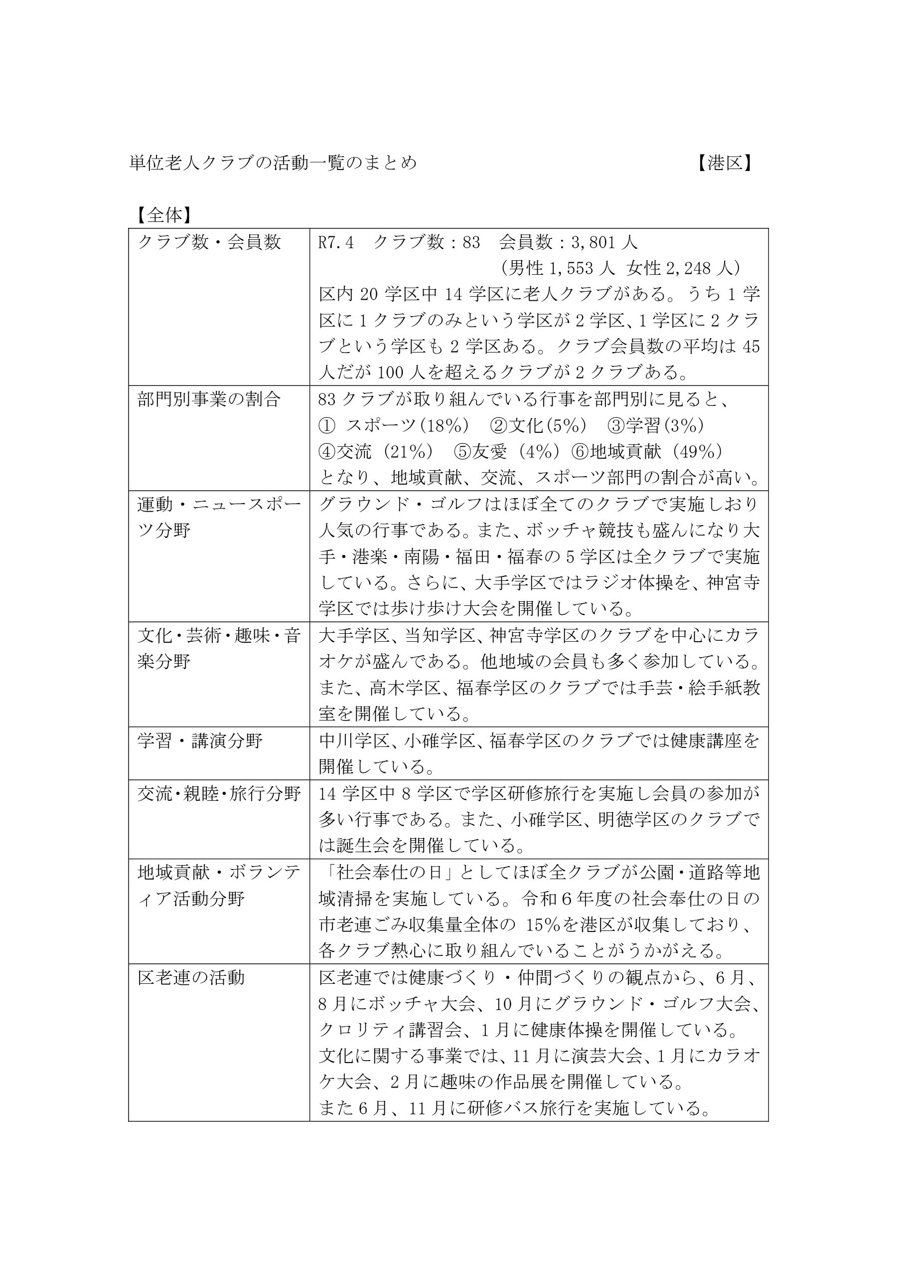 単位老人クラブ活動一覧
