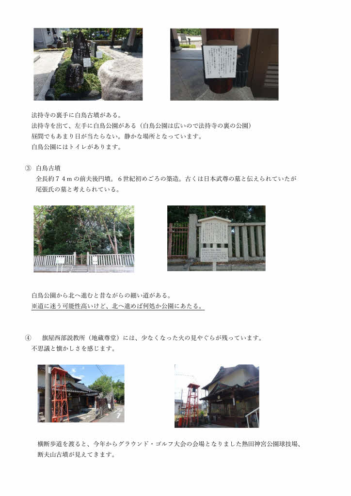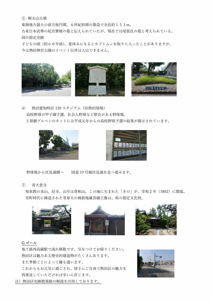 コースは、区役所を出発し誓願寺、白鳥山法持寺、白鳥古墳、旗屋西部説教所、断夫山古墳、旧熱田球場、青大悲寺を巡り季節を感じながら散策し、街の魅力を再発見したウォーキングとなりました。