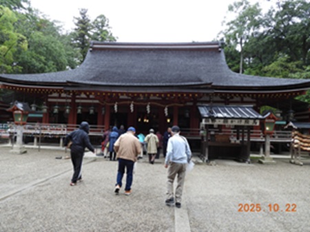 7年度指導者研修会を10月22日(水)に開催し、バス3台参加者91名で奈良県天理市石上神宮を参拝し、国宝拝殿等立派な神域でした。石上神宮は、公共交通機関の便は良くありませんので、たいへん立派な神社ですが、なかなか訪れることができませんので皆さん好評でした。昼食後、奈良市平城京跡歴史公園に行き奈良の古代の展示により改めて歴史の学習をいたしました。遣唐使船の復元模型も興味深いものでした。当日はまずまずの天気でしたが、参加者の皆さんは元気に歩いていました。