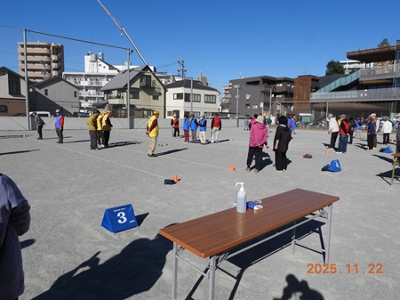 11月15日(水)に白川公園で、ふれあいニュースポーツ大会(学区対抗グラウンド・ゴルフ大会)を行いました。