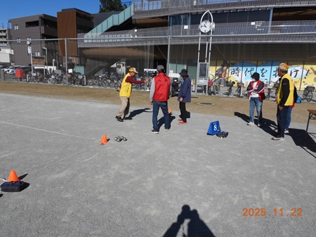 7年度ペタンク大会を11月22日(土)中村区役所多目的広場で11学区82名の選手役員が参加しました。天候に恵まれ、楽しく元気よく皆さんプレーしていました。優勝諏訪学区Aチーム、2位則武学区Bチーム、3位千成学区Aチームという結果でした。