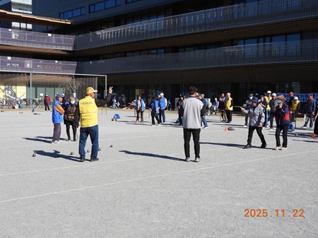 9月23日(土・祝)にぺタンク大会を行いました。ペタンク大会も過去2年コロナ禍により開催できず、3年振りでした。これまでは白川公園で行っておりましたが、今回は今年新たに開業した中村区役所の多目的広場にコートを8面設けて行いました。