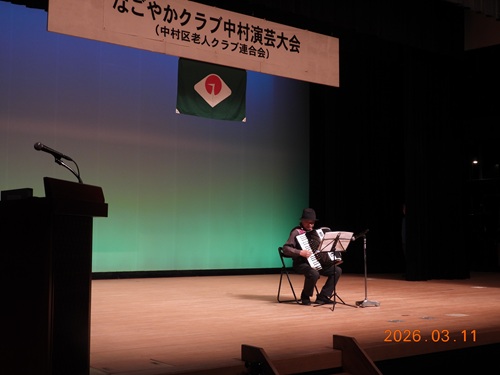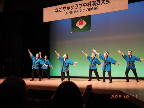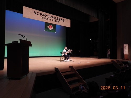 演目も、歌や楽器(オカリナ、篠笛、尺八)演奏を始め、詩吟、謡曲、講談、日本舞踊、フラダンスと多岐にわたり、中村区の元気老人のパワーを見せ付けられ大変に見ごたえがありました。
