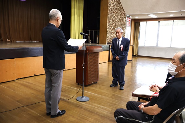 区長表彰は、板東茂夫さん(植田東)、住田菊久枝さん(表山)、加藤隆平さん(天白) の3名
