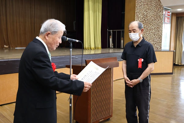 表彰式は、今年度4月に赴任された杉山 新区長からの区長表彰と、天シ連の安江会長からの会長表彰です。