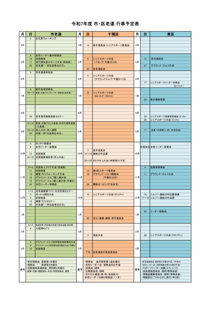 令和7年度 市・区老連行事予定表