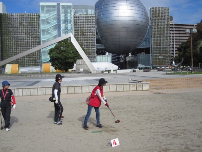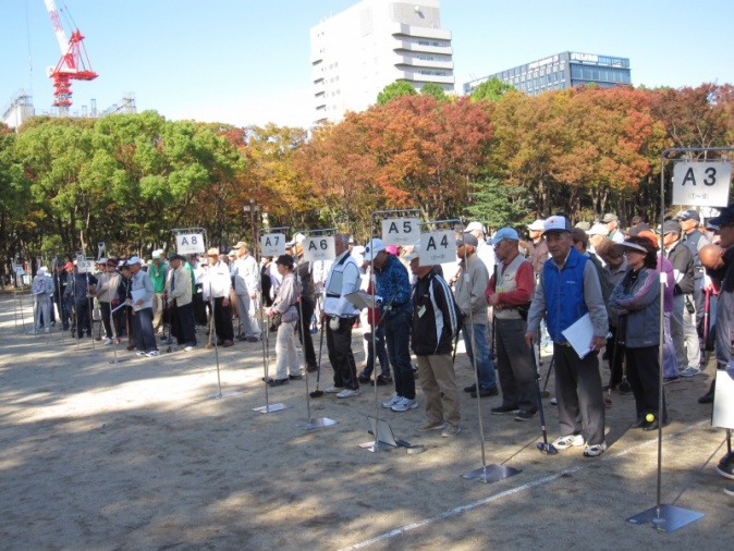 11月7日中区の白川公園広場でグラウンド・ゴルフ大会を開催しました。当初開催日11月6日は雨になり翌日に順延しました。翌日は晴天に恵まれ絶好の運動日和、152名の方が、日頃の練習の成果を発揮しました。